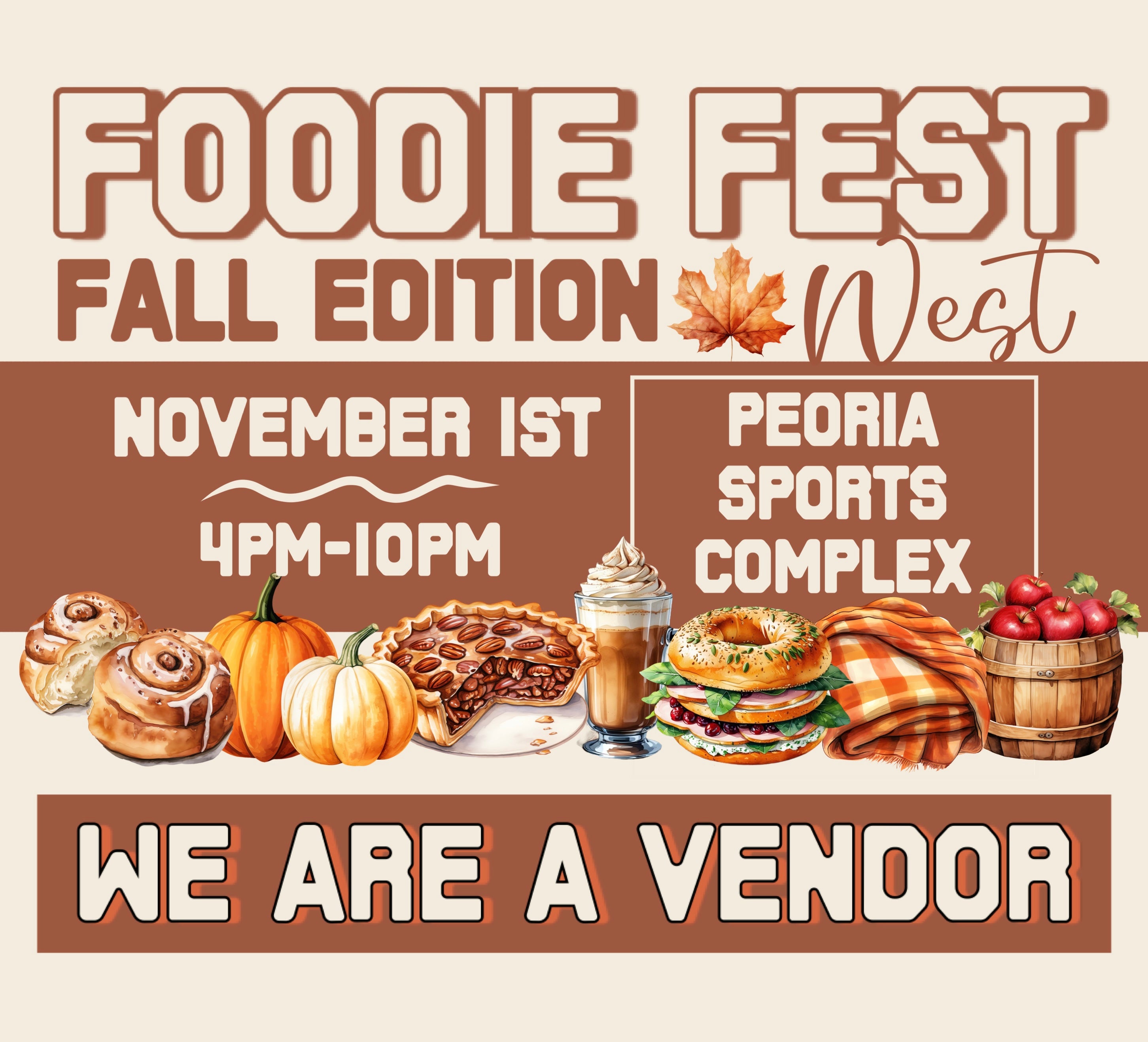 Foodie Fest West | FALL EDITION 🥧🍂Foodie Fest West is heading to the Peoria Sports Complex with a Fall twist! 🚚 Food Trucks & Vendors 🥧 Pie Eating Contest🛍️ Shopping Vendors 🪓 Axe Throwing🐴 Petting Zoo 🎃 Pumpkin Painting 🍎 Caramel Apple Bar 👒 Hat Bar🍷 Full Bar💐 Flower Bar 🎡 Kids Zone ✍️ Caricature Artist & many more family fun activities!! 𝐖𝐡𝐞𝐧 - Saturday November 1st 𝐖𝐡𝐞𝐫𝐞 - Peoria Sports Complex 16101 N. 83rd Ave. Peoria 85382 𝐓𝐢𝐦𝐞 - 4pm-10pm or until sold out! Be sure to stop by and break bread with us! We'll also have our new Prickly Berry Banana Bread as well!!