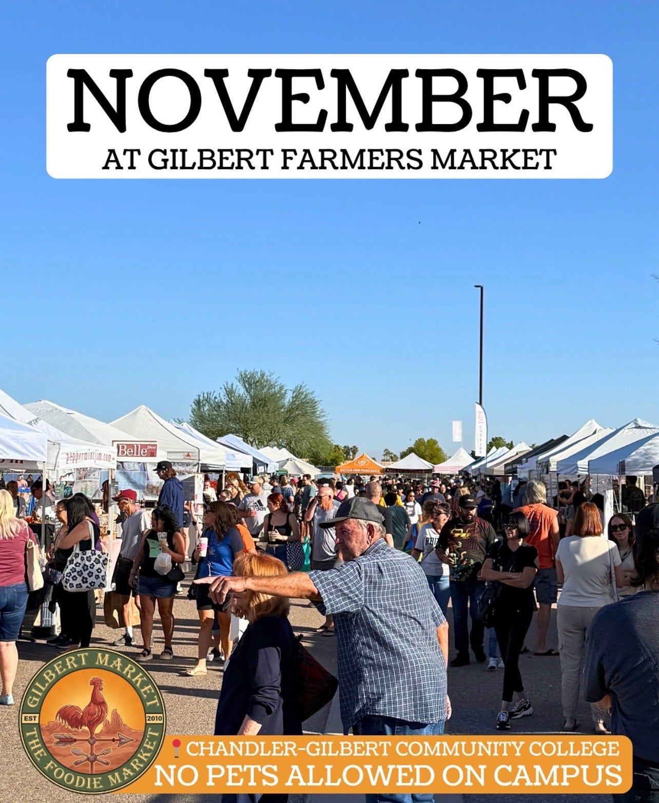 This is our weekly market and definitely the place to get all your breads and be the first to try our newest flavors! We are so excited to start a new month at our new home, Chandler-Gilbert Community College, with even more new vendors! We will be open every Saturday, except December 27, 2025. We would love for you to come down and shop local every Saturday from 8 AM to 12 PM. Gilbert Farmers Market “The Foodie Market” 📆 WHEN: Every Saturday Morning HOURS: 8AM-12PM Rain or Shine•📍✨NEW LOCATION!✨WHERE: Chandler-Gilbert Community College 🚫🐕🚫 Friendly Reminder: Dogs are not permitted at the Gilbert Farmers Market at CGCC, as per venue policies.